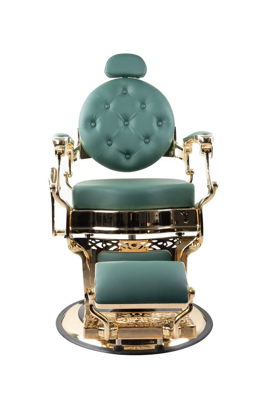 Antique Premium Luxury Green & Gloss Metallic Golden Frame Barber Chair - BC969