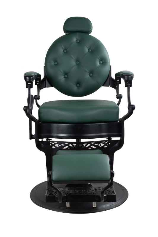 Antique Heavy Duty Luxury Green Barber Chair With Matt Black Metal Frame - BC928