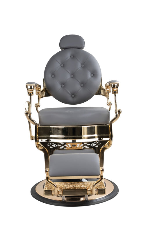 Antique Premium Luxury Grey & Gloss Metallic Golden Frame Barber Chair - BC961