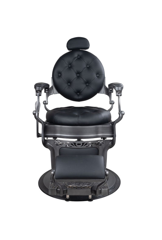 Antique Heavy Duty Luxury Black Barber Chair With Matt Grey Metal Frame - BC515