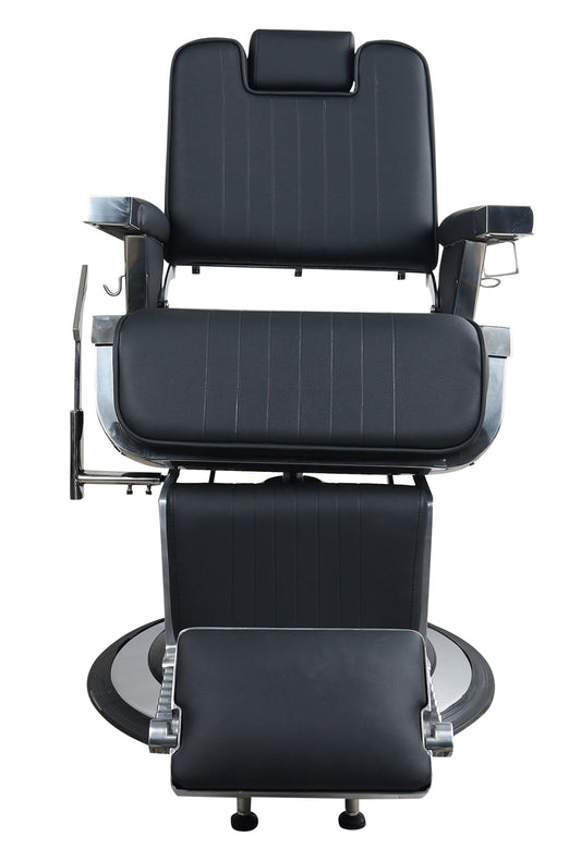 Antique Heavy Duty Luxury Black Barber Chair With Silver Chrome Frame - BC501